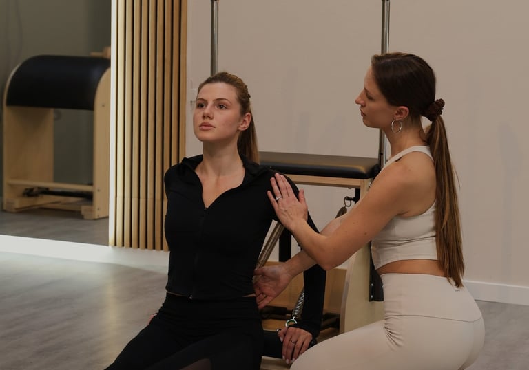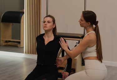 Uma sessão totalmente personalizada, individual ou duas pessoas, adaptada às suas necessidades específicas, combinando exercícios de Reformer e outros aparelhos de Pilates para obter resultados ideais.